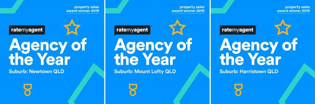 Our agency, is thrilled to announce that we have won Agency of the Year for Harristown, Mount Lofty and Newtown in the RateMyAgent 2019 Agent of the Year Awards.